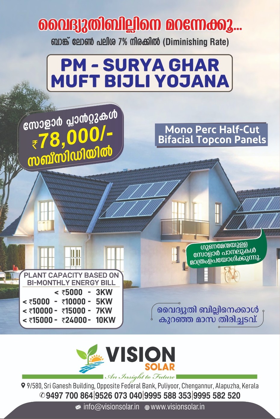 At Vision Solar, we are pioneers in harnessing the power of the sun to illuminate homes and futures across Kerala and beyond. Founded with a deep-rooted commitment to sustainable energy, we specialize in delivering cutting-edge solar solutions that blend innovation, affordability, and environmental stewardship. As an "Insight to Future," our journey began with a vision to make clean, renewable energy accessible to every household, empowering communities to break free from rising electricity costs while contributing to a greener planet.